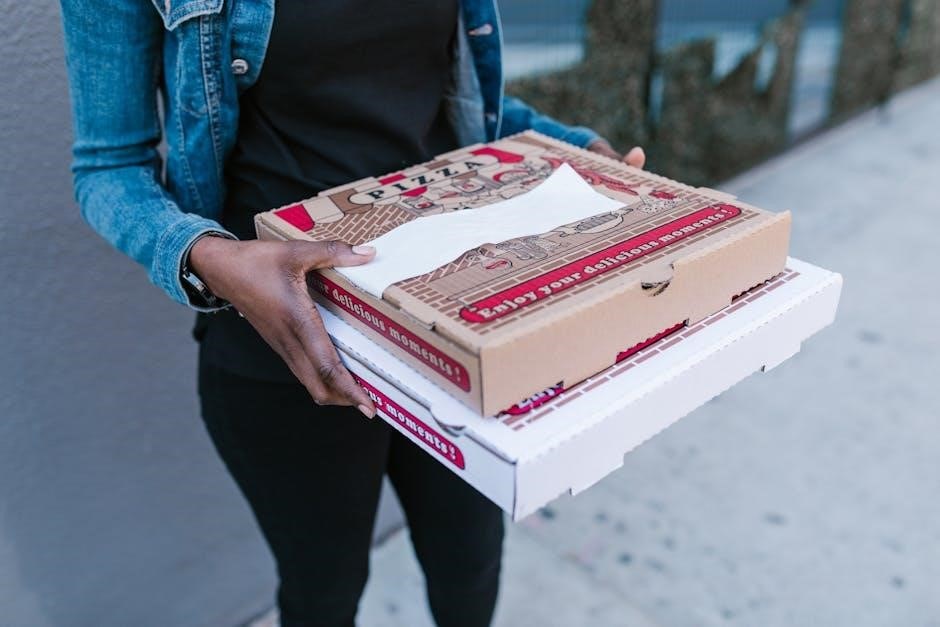 Guido’s Pizza Chesterland offers delivery services to the local area, ensuring fresh, hot meals arrive at your doorstep․ The delivery process is streamlined for convenience, with orders accepted online or by phone․ Their team ensures timely delivery, maintaining the high quality of their dishes․ For takeout, customers can place orders and pick them up at their location on Chillicothe Road․ Both options allow patrons to enjoy Guido’s signature pizzas, pastas, and salads in the comfort of their own homes․ This service is particularly popular for families and events, making Guido’s a reliable choice for delicious Italian cuisine on the go․